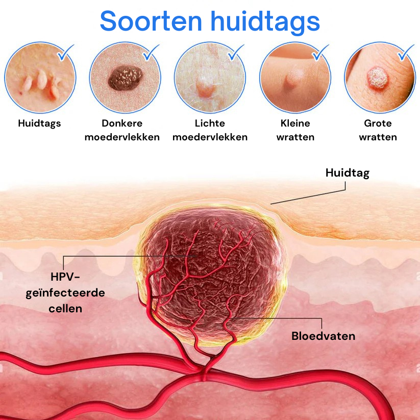 ☑️ Voorkomt dat huidtags en oneffenheden veranderen in huidletsels