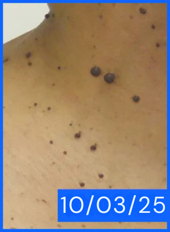 Nadat ik het voor het eerst had gebruikt op 10/01/25, merkte ik al een lichte verbetering in de grootte van mijn grote huidtags op 10/03/25. Ze werden kleiner en sommige kleine huidtags waren al verdwenen. Ik was zo onder de indruk van de resultaten in zo'n korte tijd dat ik het bleef gebruiken.