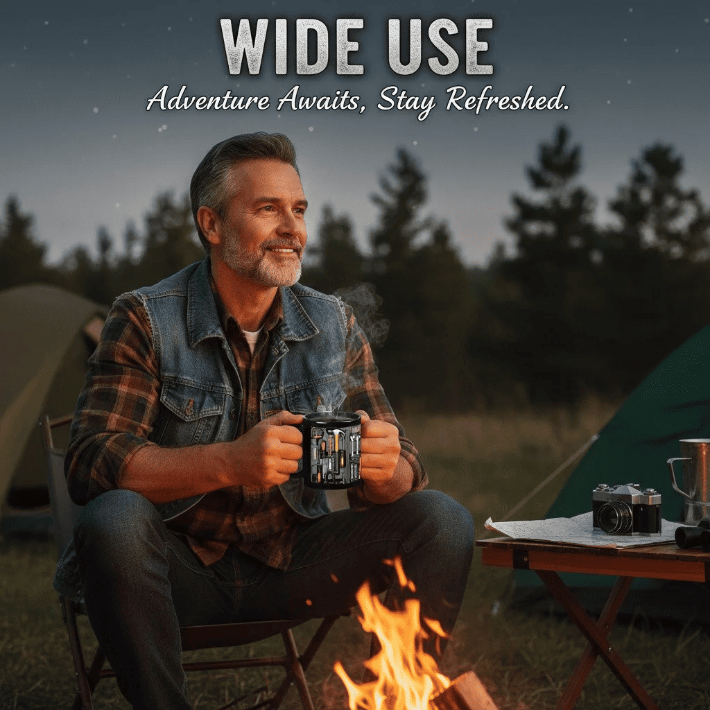 Hyperrealistic toolbox design: the surface of the mug resembles a fully stocked toolbox, complete with a hammer, screwdrivers, pliers, measuring tape, and small hardware details. It looks like a miniature toolbox that you can actually drink from, giving you a healthy dose of "DIY energy" with every sip.