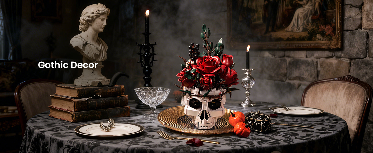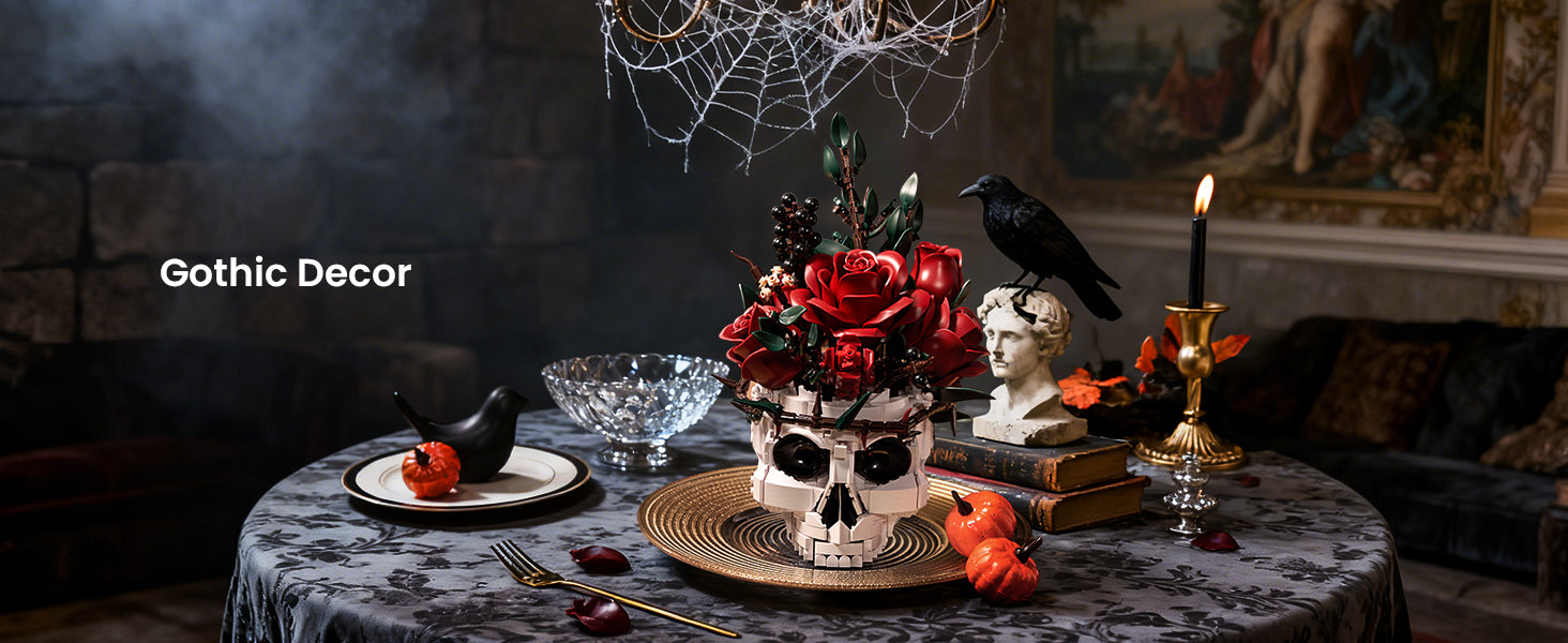 Gothic Skull Red Rose Bouquet Building Set - Unique Eternal Flower Decor