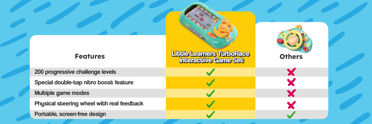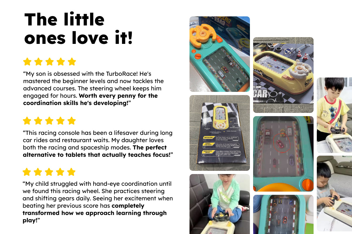 From simple steering to overcoming challenges, this racing console adapts to your child's developing coordination and reaction time.