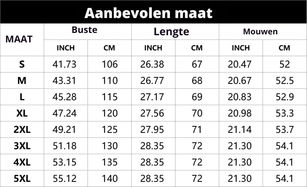 - Suggestie:* Deze gegevens zijn verkregen door het product handmatig te meten. Het kan 0,03-0,06 inch/1-3 cm afwijken.