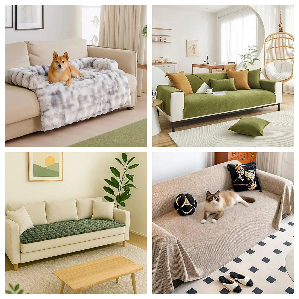 Housse de canapé en flanelle douillette une pièce protection antidérapante
