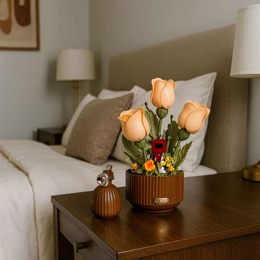3 Articulated roses, 1 water can, 255 pieces to assemble, 1 charging cable (Type C) and 1